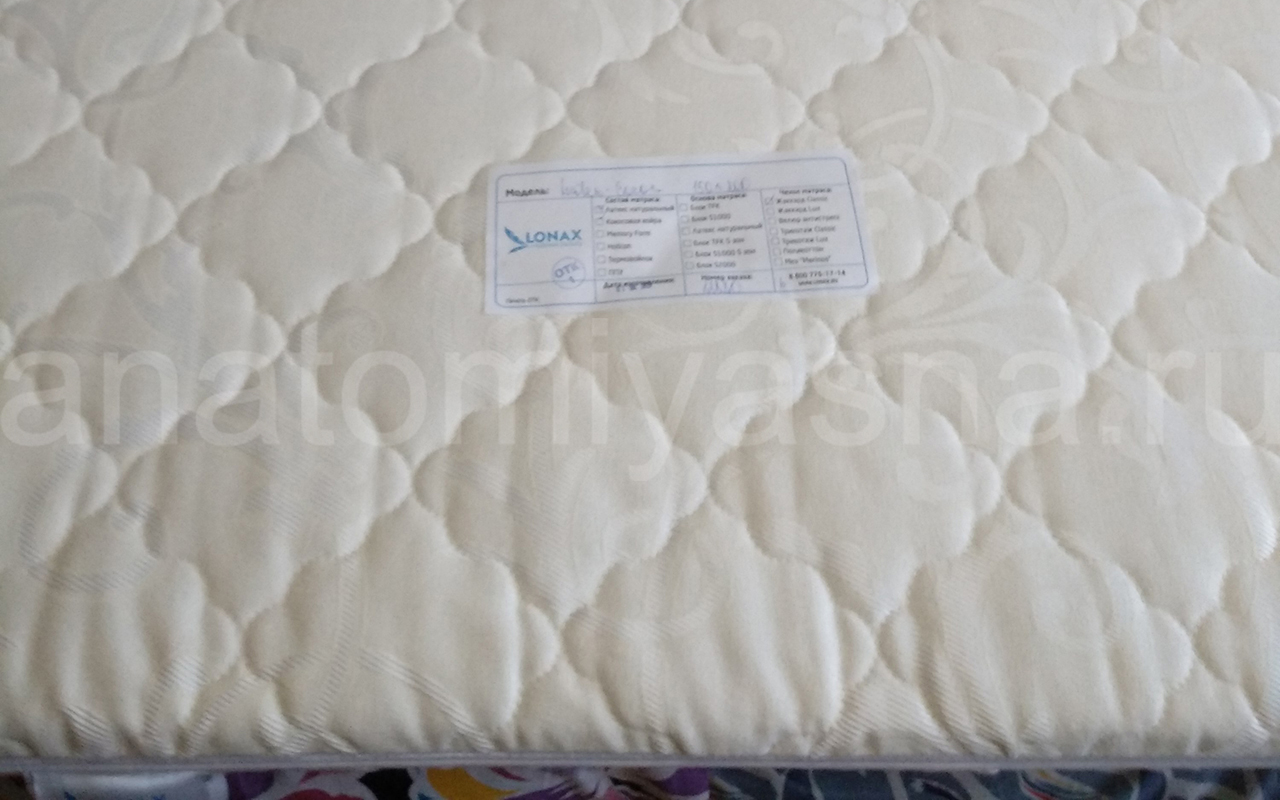 Приветствуем Вас в нашем интернет-магазине «Анатомия сна». Сегодня я расскажу Вам о матрасе для коррекции жесткости от фабрики Лонакс, LATEX-COCOS 6. Лонакс-Российская компания, более 6 лет успешно лидирующая на рынке продукции для сна и комфортна, предлагает своим покупателям внушительный ассортимент товаров. Выбирая Лонакс, Вы получаете недорогие матрасы, приемлемая стоимость которых удачно соединяется с отличным качеством, практичностью и функциональностью. Ортопедический наматрасник LATEX-COCOS 6 позволяет регулировать жесткость спального места. Изготовлен из сочетания слоев - латексированной кокосовой койры и натурального латекса. Каждый слой по 3 см. Сторона с кокосовой койрой выравнивает спальное место, создает правильную поддержку позвоночнику во время сна, перекрывает любые стыки в диване. Натуральный латекс в свою очередь смягчает поверхность спального места, придает анатомический эффект, комфорт и удобство. Латекс - 100% натуральный мягкий материал, изготавливаемый из млечного сока каучукового дерева, латексированная кокосовая койра - 100% натуральный жесткий материал, изготавливаемый из пролатексированных кокосовых волокон. Верхнее покрытие-хлопковый жаккард простеганный на синтепоне, ткань прочная и износостойкая. Чехол съемный на молнии. Крепление резинки по углам. Наматрасник Лонакс, LATEX-COCOS 6 признан лучшим и самым практичным по наполнению в своей категории и очень пользуется спросом, кто хочет скорректировать свое спальное место.
