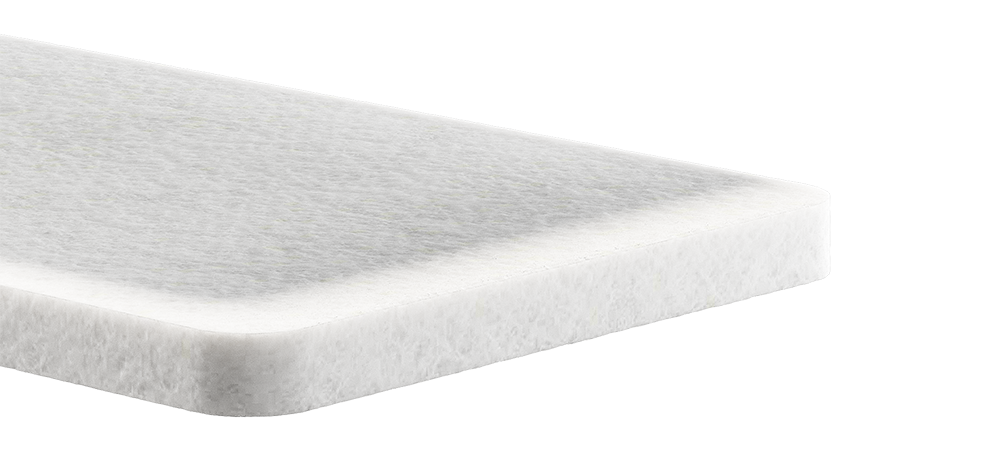 Нетканный материал струттофайбер толщиной 6 см. используется в качестве замены пенополиуретана (ППУ) для придания плотности и пружинистости. Материал обладает прочностью и износостойкостью.