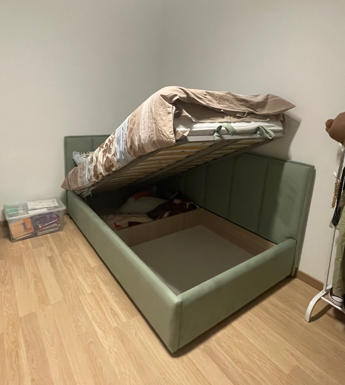 Кровать с выдвижным ящиком или подъемным механизмом очень практична. Благодаря внутреннему пространству кровати, у вас появляется дополнительное место для хранения постельных принадлежностей. Если вы выбираете кровать с ящиками для хранения вещей, вам нужно убедиться, что у вас достаточно места в спальне, чтобы их выдвигать (открывать). Ведь никто не должно препятствовать к их доступу.