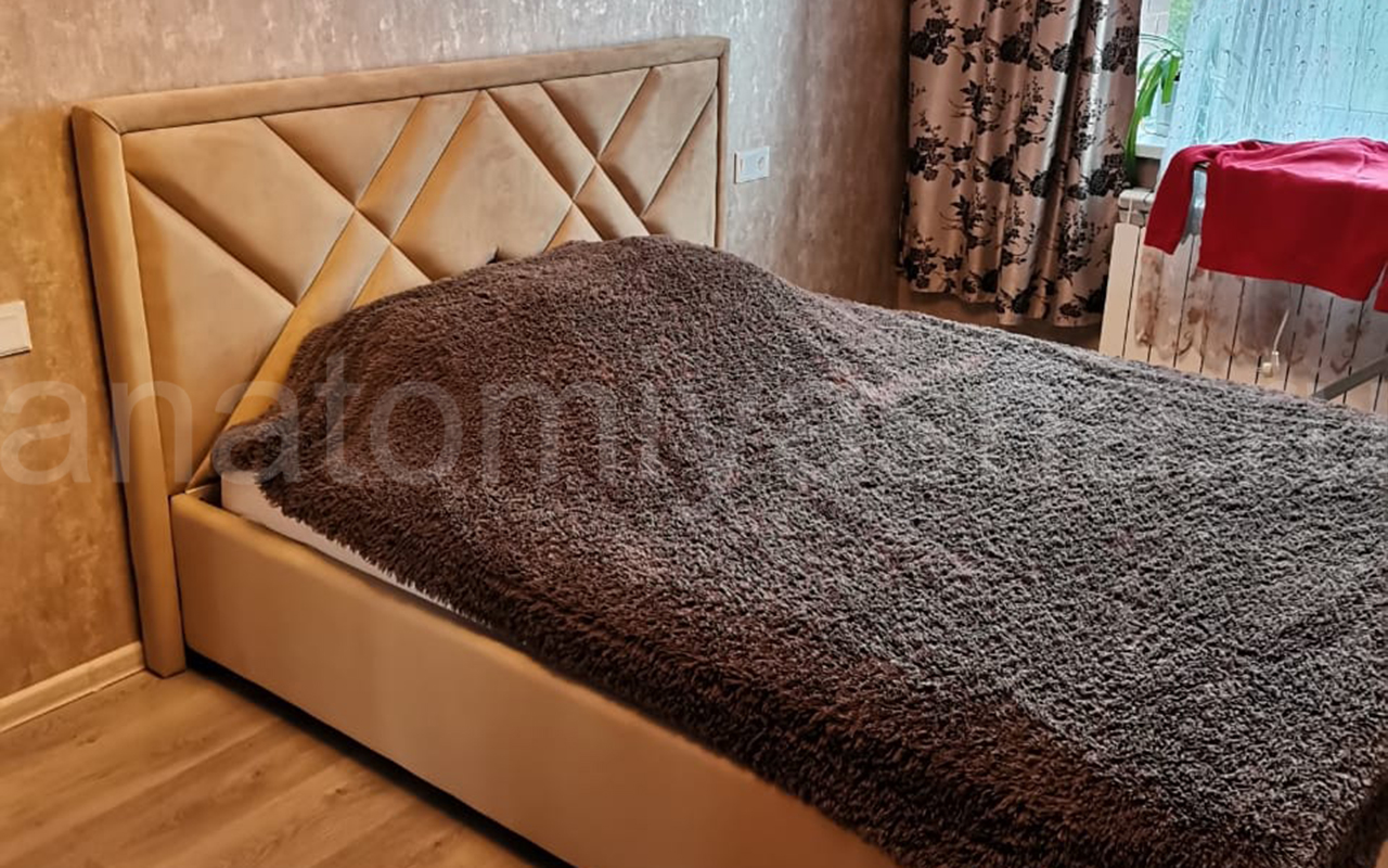 Мягкие кровати. Кровати с обивкой в последнее время стали все больше и больше приобретать популярность. Каркас кровати этого типа обычно изготавливается из ДСП, МДФ или дерева, а затем «одевается» в текстильные материалы (обычно ткань) или кожу (натуральную или экологическую). Кровать с кожаным каркасом придает спальне изысканный вид. А разнообразие цветом, фактур и качества матерьяла, позволяет каждому найти вариант на свой вкус.
