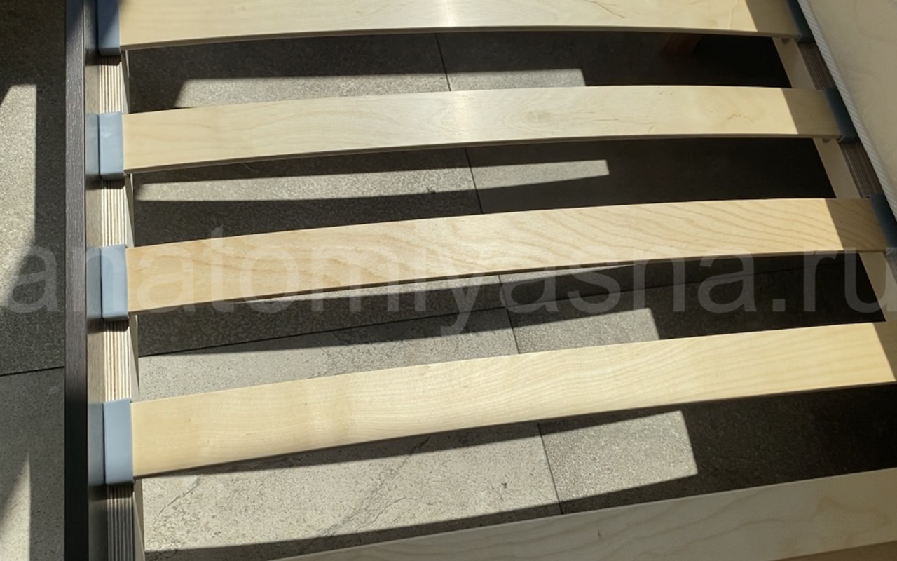 Спинка у изголовья и изножье. Эти предметы не являются обязательными и служат скорее для украшения и для повышения комфорта. Например, при чтении книги перед сном намного удобнее опираться на высокую мягкую спинку. А край эстетичных ножек зрительно отделяет спальное пространство от всей спальни и являются акцентом, от которого ваш интерьер только выиграет.