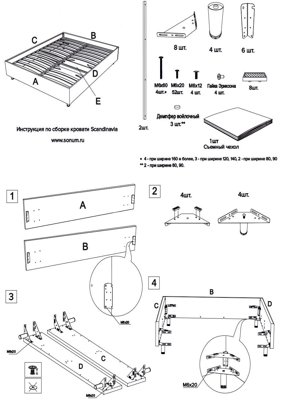Спинка у изголовья и изножье. Эти предметы не являются обязательными и служат скорее для украшения и для повышения комфорта. Например, при чтении книги перед сном намного удобнее опираться на высокую мягкую спинку. А край эстетичных ножек зрительно отделяет спальное пространство от всей спальни и являются акцентом, от которого ваш интерьер только выиграет.